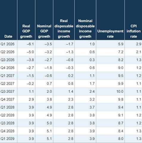 美联储的严重不利情景预测将出现严重衰退,失业率升至10%,通胀率降至1.1%——这看起来是一个典型的通货紧缩型衰退。